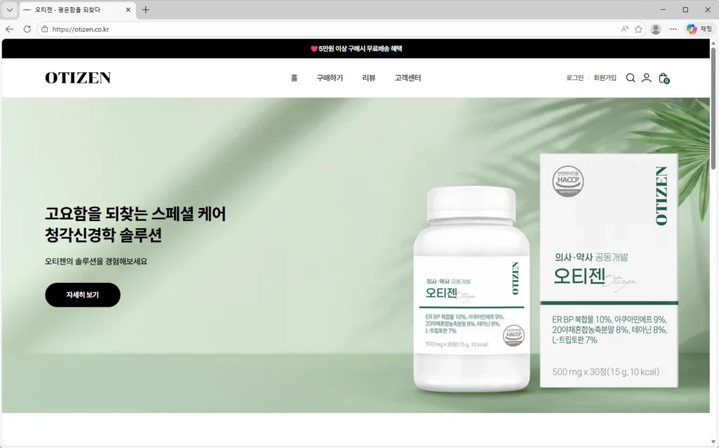 오티젠(otizen.co.kr)은 청각 건강에 대한 과학적 접근을 통해 현대인의 지친 신경계를 케어하는 프리미엄 브랜드입니다.