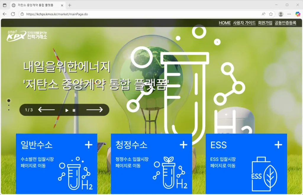 저탄소 중앙계약 통합 플랫폼 (kchps.kmos.kr)은 전력거래소(KPX)가 운영하는 디지털 인프라로, 청정수소발전시장(CHPS)ESS 중앙계약시장과 같은 저탄소 에너지 관련 시장의 경쟁입찰 및 계약 절차를 통합적으로 관리하고 지원하는 시스템입니다. 이 플랫폼은 에너지 전환 시대에 발맞춰 저탄소 전원의 도입을 촉진하고, 투명하고 효율적인 중앙계약 거래 환경을 구축함으로써 국가적인 에너지 목표 달성에 기여하고 있습니다.