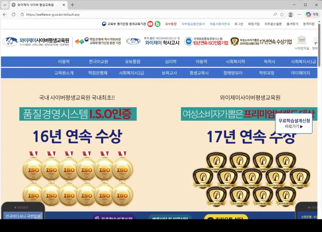 오늘은 오랜 전통과 높은 합격률로 정평이 난 와이제이(YJ) 사이버 평생교육원(www.e-yj.co.kr)의 특징과 장점을 정리해 드립니다.