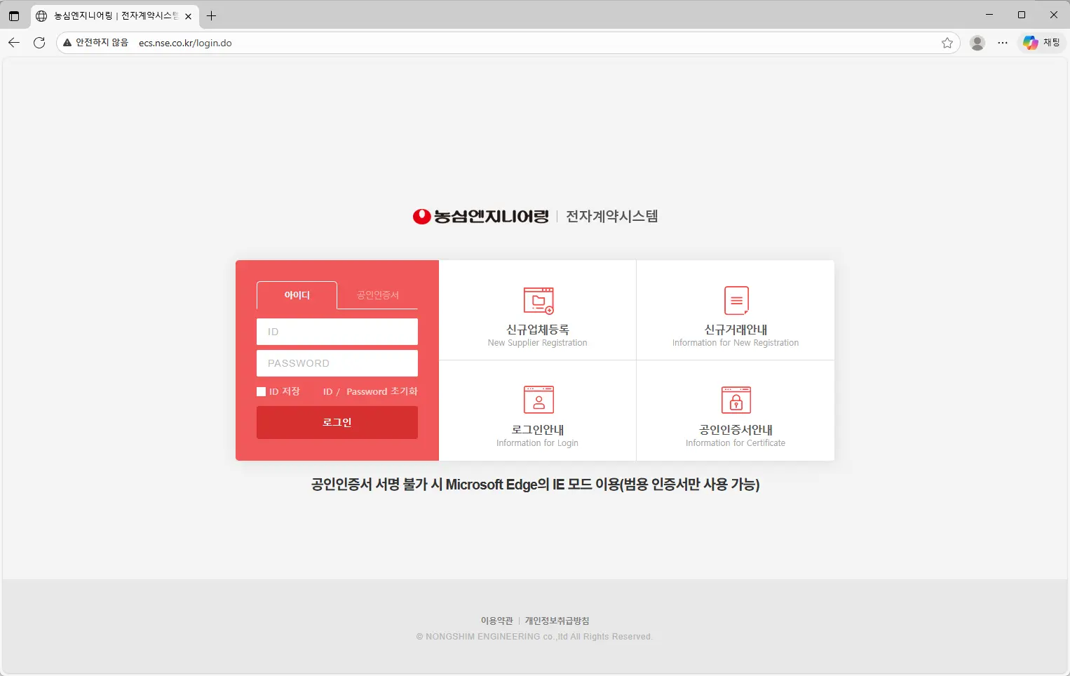 농심엔지니어링 전자계약시스템 (ecs.nse.co.kr)
